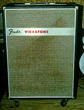 Front I found this in Austin, Texas. It was basically kept in a studio since it was purchased. It is all original with the footswitch and cover! Right Side I sold my '69 Super Reverb back in 1999 to get this. The deal definitely worked in my favor. You don't find these in this condition too often. Back Closeup of back connections ID Tag Guitars | Amps | Effects | Home |